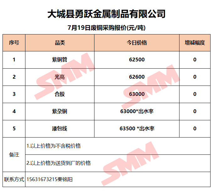今日大城勇跃,废铜采购报价已更新,有货的朋友欢迎联系我们!