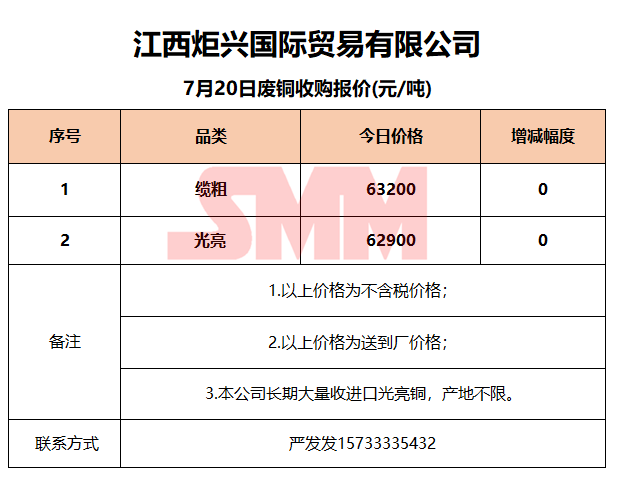 今日江西炬兴,废铜收购报价已更新,有货的朋友欢迎联系我们!
