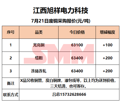 今日江西旭祥,废铜采购报价已更新,有货的朋友欢迎联系我们!