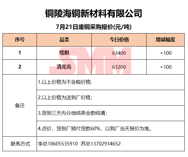 今日铜陵海铜,废铜采购报价已更新,有货的朋友欢迎联系我们!