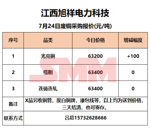 7月24日江西旭祥 废铜采购报价