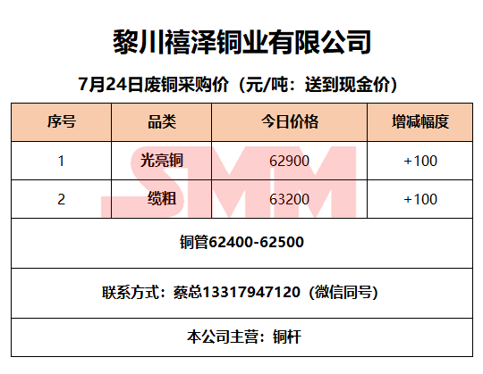 7月24日黎川禧泽铜业 废铜采购报价