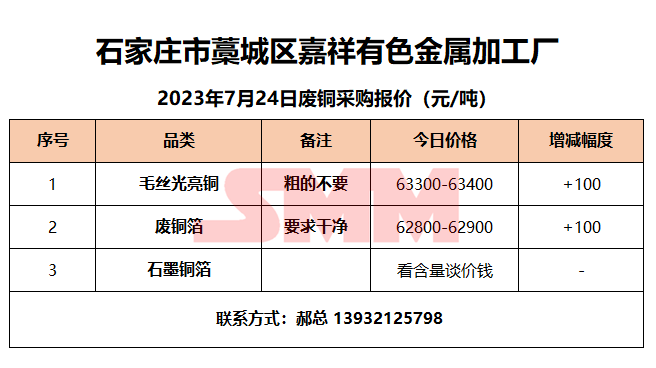 今日嘉祥有色金属,废铜采购报价已更新,有货的朋友欢迎联系我们!