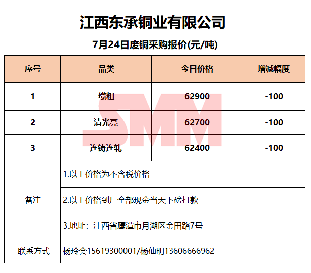 7月24日江西东承 废铜采购报价