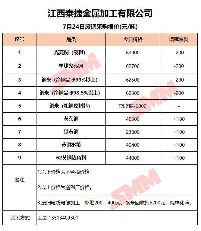 7月24日江西泰捷 废铜采购报价