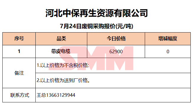 7月24日河北中保 废铜采购报价