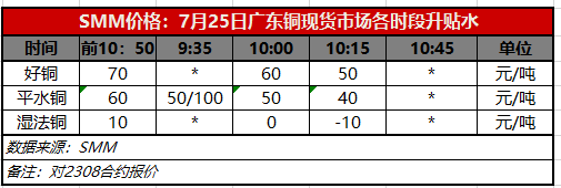 7月25日广东铜现货市场各时段升贴水(第三时段10:15)【SMM价格】