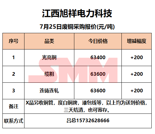 今日江西旭祥,废铜采购报价已更新,有货的朋友欢迎联系我们!