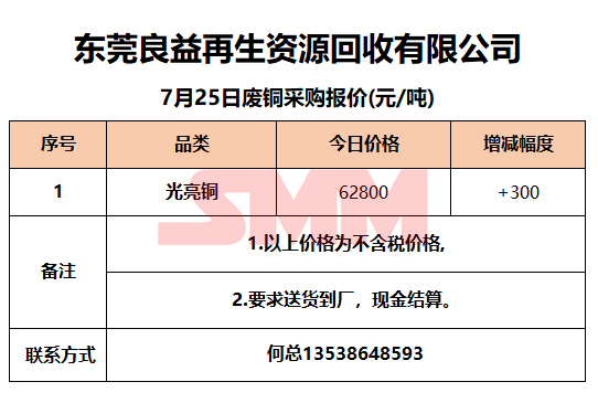 7月25日东莞良益 废铜采购报价