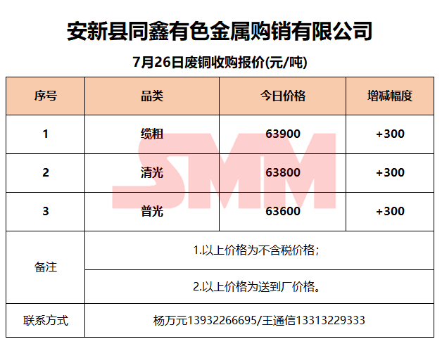 7月26日安新同鑫 废铜收购报价