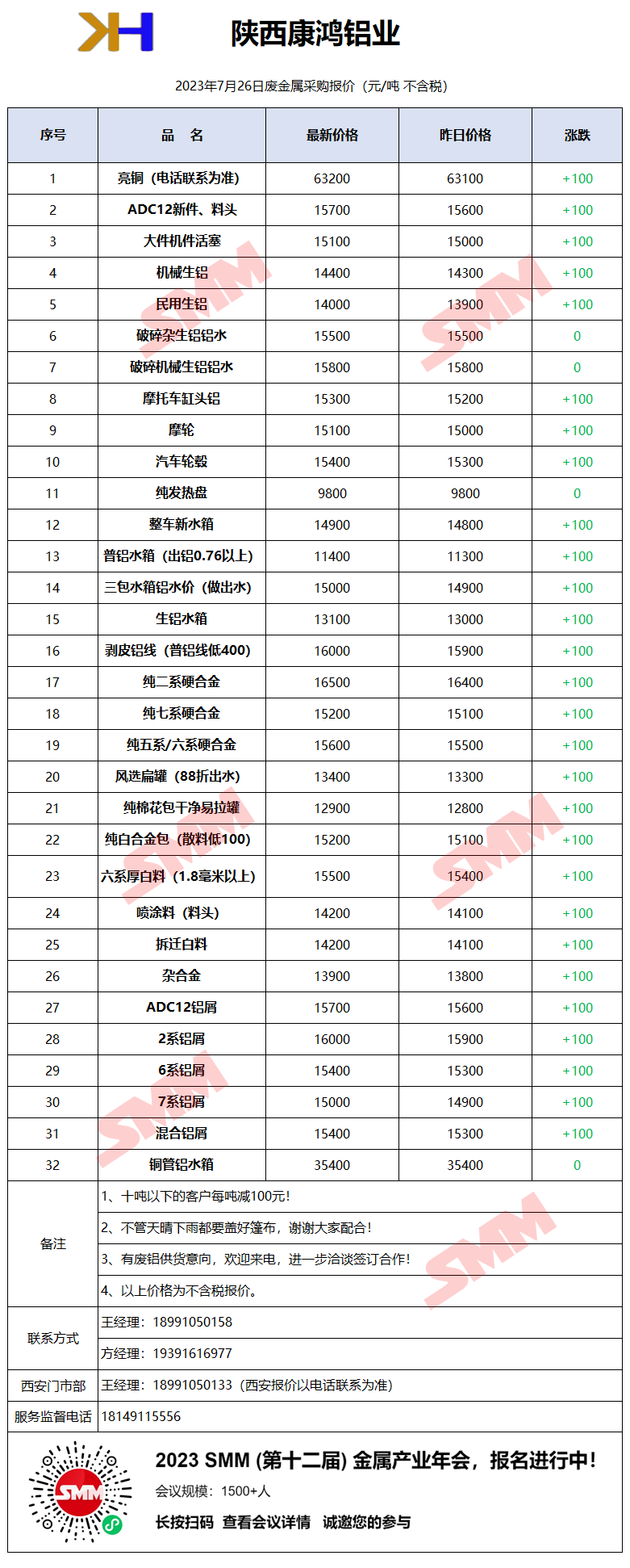 今日陕西康鸿铝业 废金属采购报价已更新,有货的朋友欢迎联系我们!