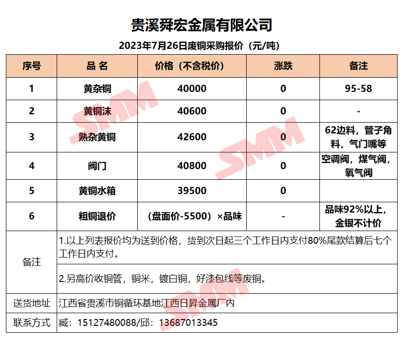 今日贵溪舜宏金属有限公司 ,废铜采购报价已更新,有货的朋友欢迎联系我们!