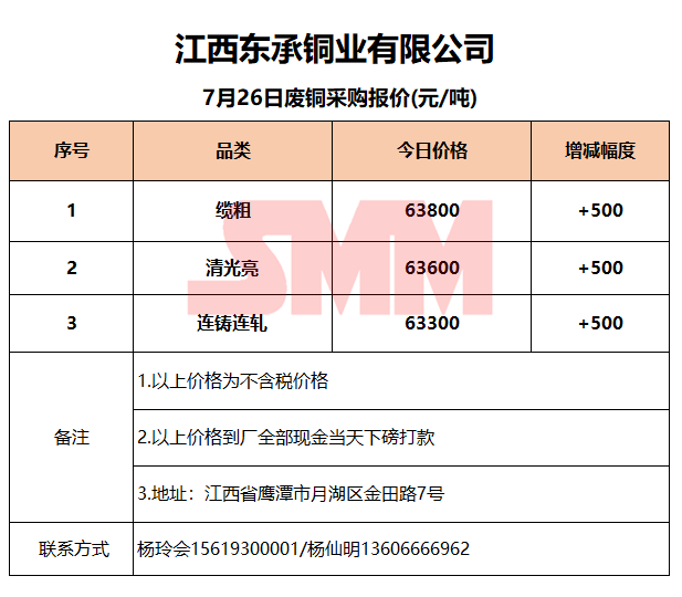 今日江西东承铜业/博升铜业 废铜采购报价已更新,有货的朋友欢迎联系我们!