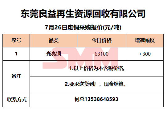 7月26日东莞良益 废铜采购报价