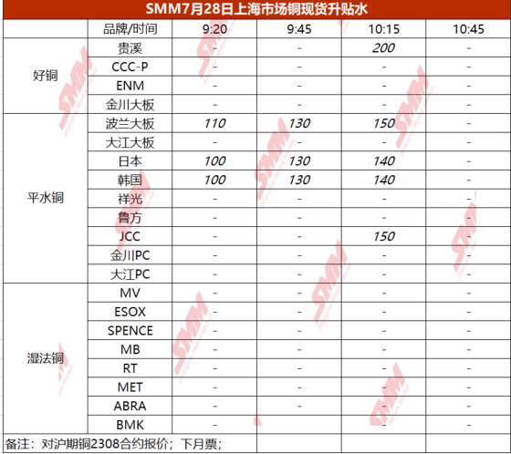 7月28日上海市场铜现货升贴水(第三时段)【SMM价格】