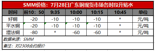 7月28日广东铜现货市场各时段升贴水(第三时段10:15)【SMM价格】