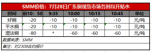 7月28日广东铜现货市场各时段升贴水(第四时段10:45)【SMM价格】