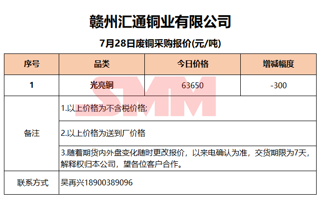 7月28日赣州汇通 废铜采购报价