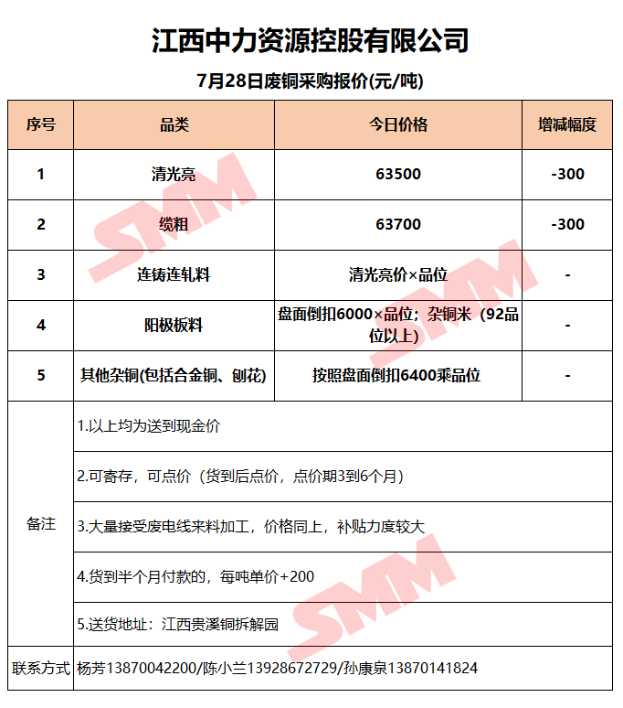 今日江西中力资源,废铜采购报价已更新,有货的朋友欢迎联系我们!