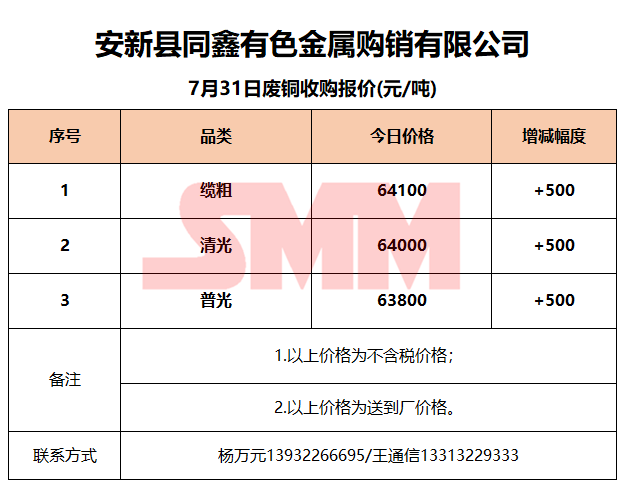 7月31日安新同鑫 废铜收购报价