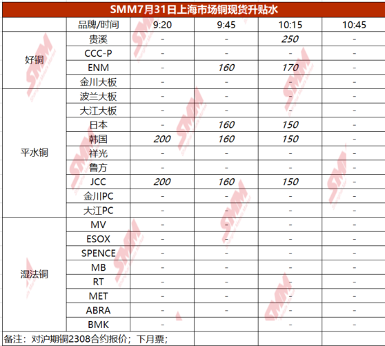 7月31日上海市场铜现货升贴水(第三时段)【SMM价格】