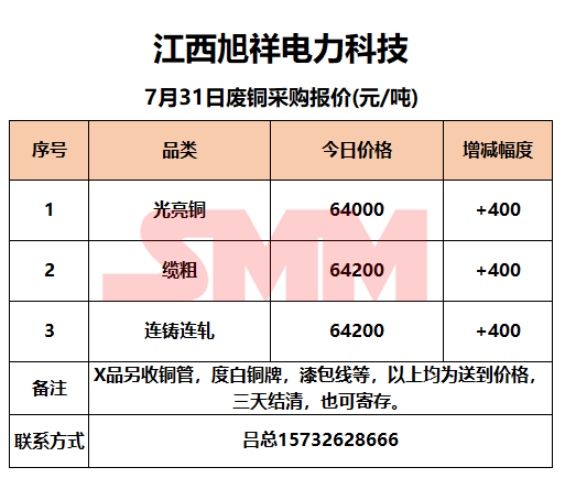 7月31日江西旭祥 废铜采购报价