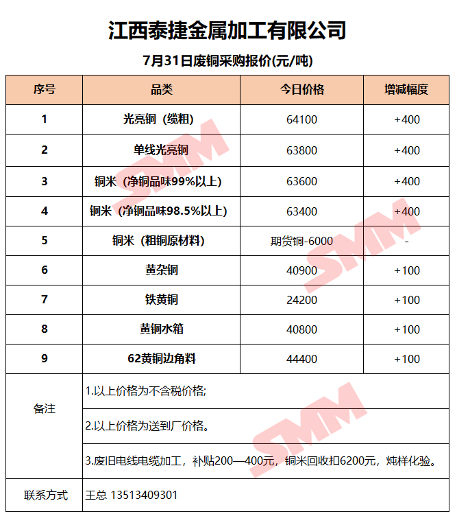 今日江西泰捷,废铜采购报价已更新,有货的朋友欢迎联系我们!