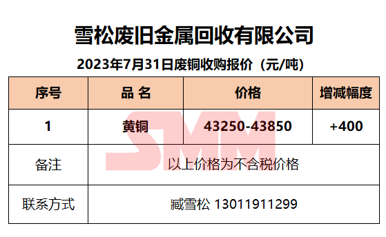 7月31日雪松废旧 废铜收购报价