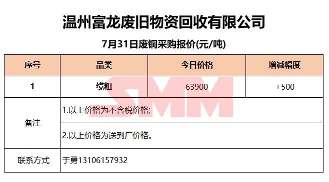 7月31日温州富龙废旧 废铜采购报价