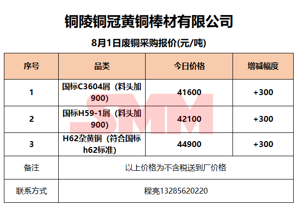 8月1日铜陵铜冠 废铜采购报价