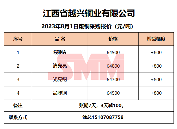 今日江西越兴,废铜采购报价已更新,有货的朋友欢迎联系我们!