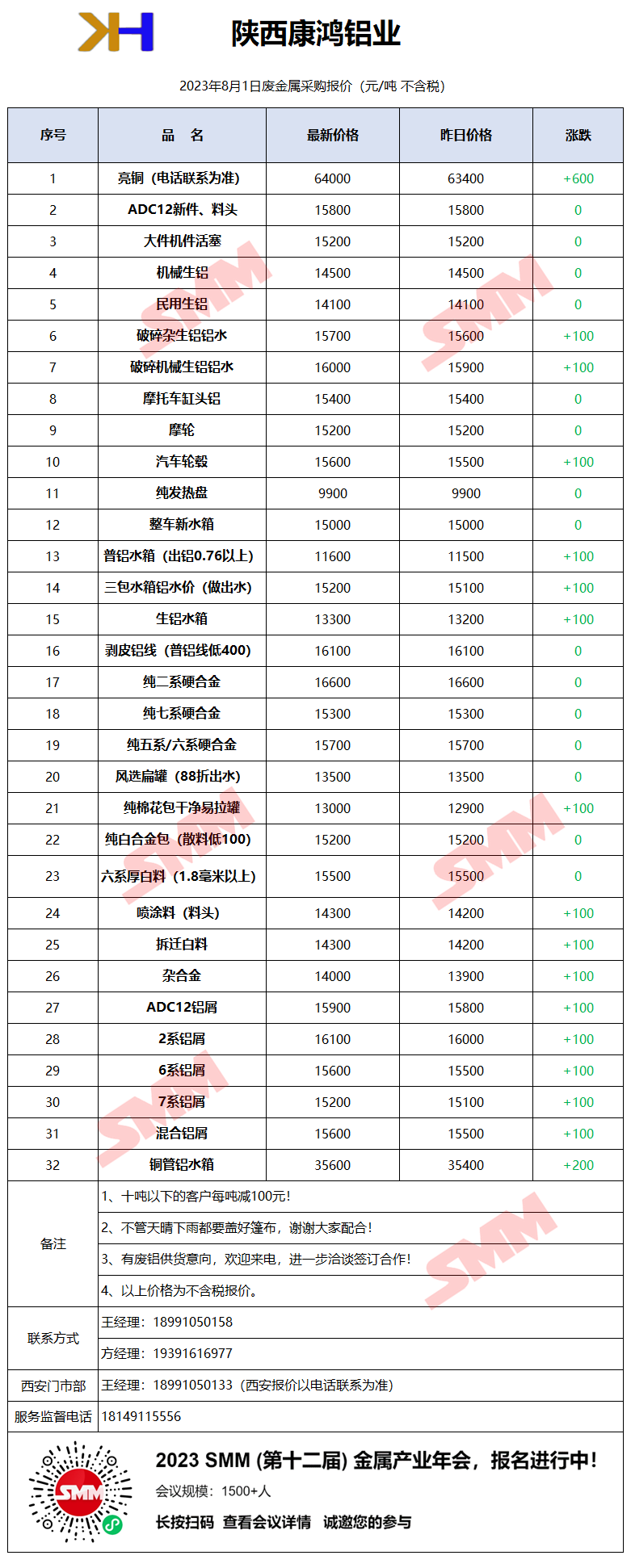 今日陕西康鸿铝业 废金属采购报价已更新,有货的朋友欢迎联系我们!