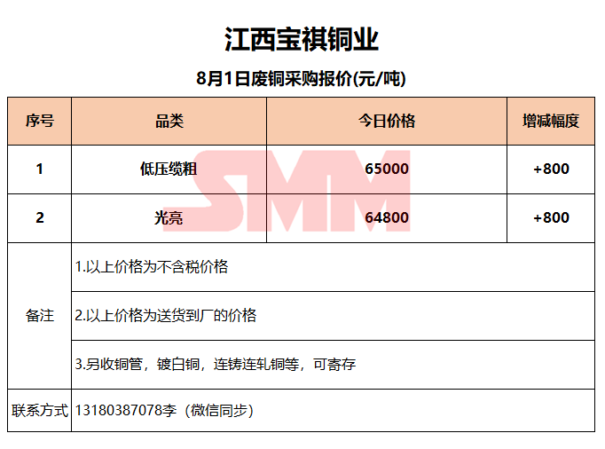 今日江西宝祺铜业 废铜采购报价已更新,有货的朋友欢迎联系我们!
