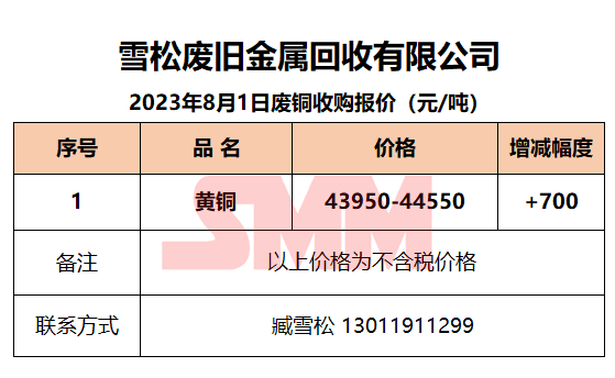 8月1日雪松废旧 废铜收购报价