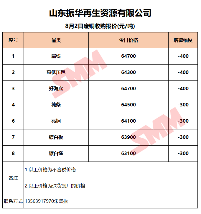 8月2日山东振华 废铜收购报价