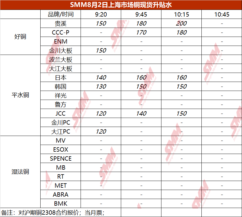 8月2日上海市场铜现货升贴水(第三时段)【SMM价格】