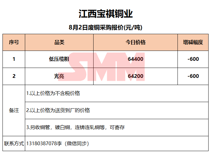 8月2日江西宝祺 废铜采购报价