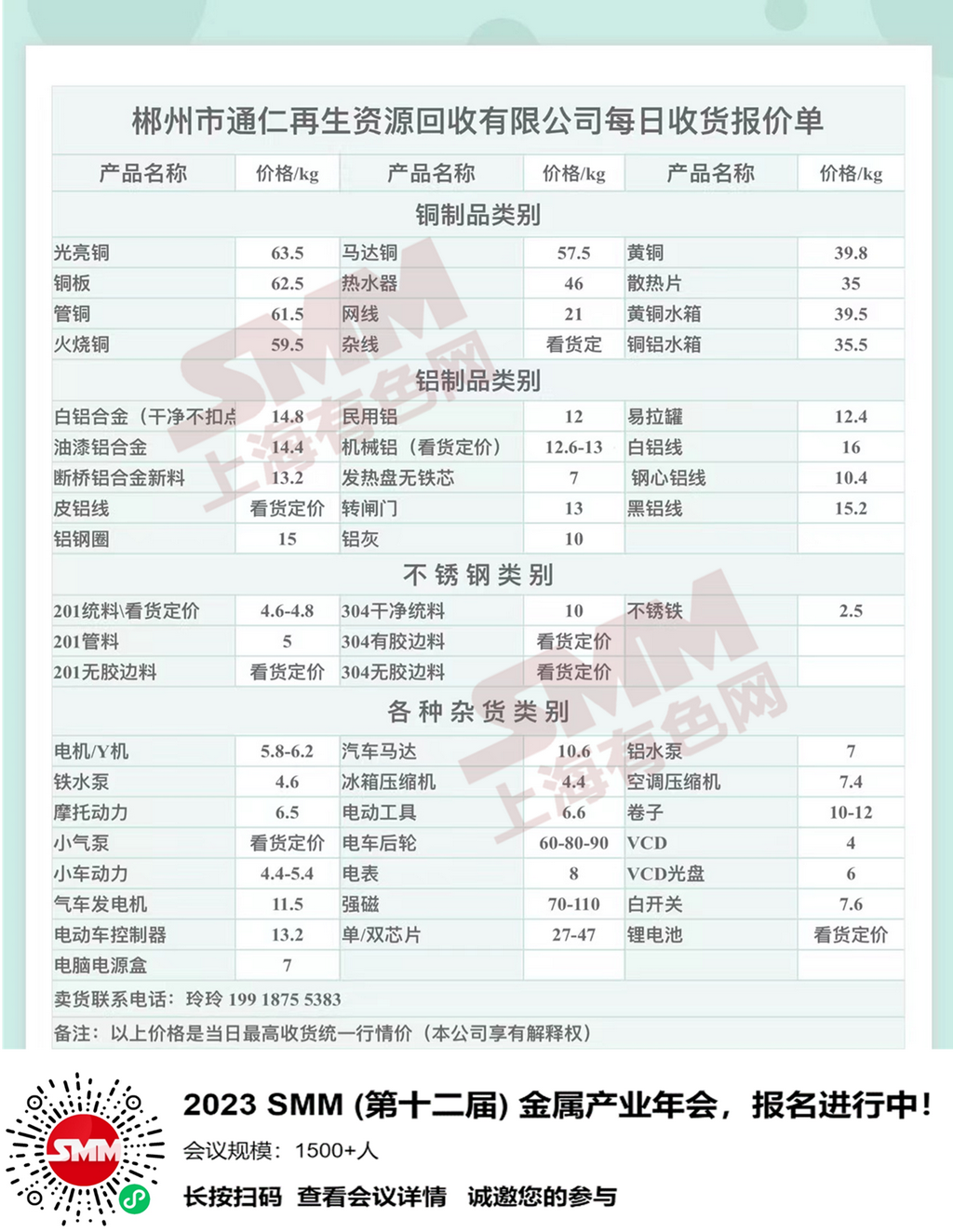 今日郴州市通仁再生资源回收有限公司 废金属收购报价已更新,有货的朋友欢迎联系我们!