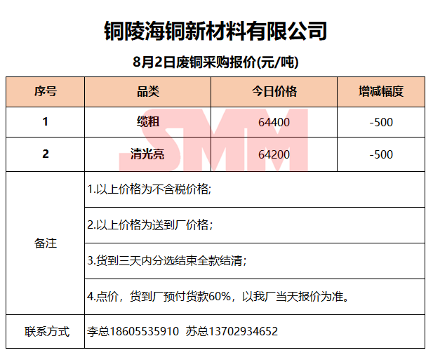 今日铜陵海铜,废铜采购报价已更新,有货的朋友欢迎联系我们!
