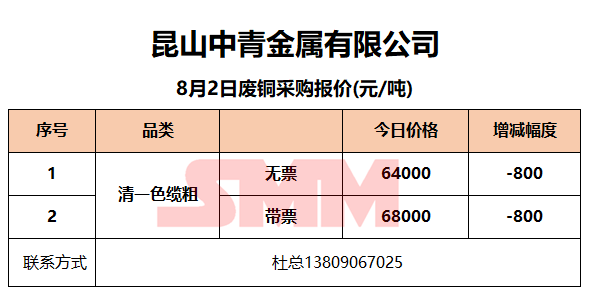 今日昆山中青金属 ,废铜采购报价已更新,有货的朋友欢迎联系我们!