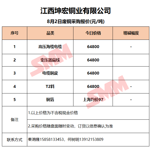 今日江西坤宏,废铜采购报价已更新,有货的朋友欢迎联系我们!