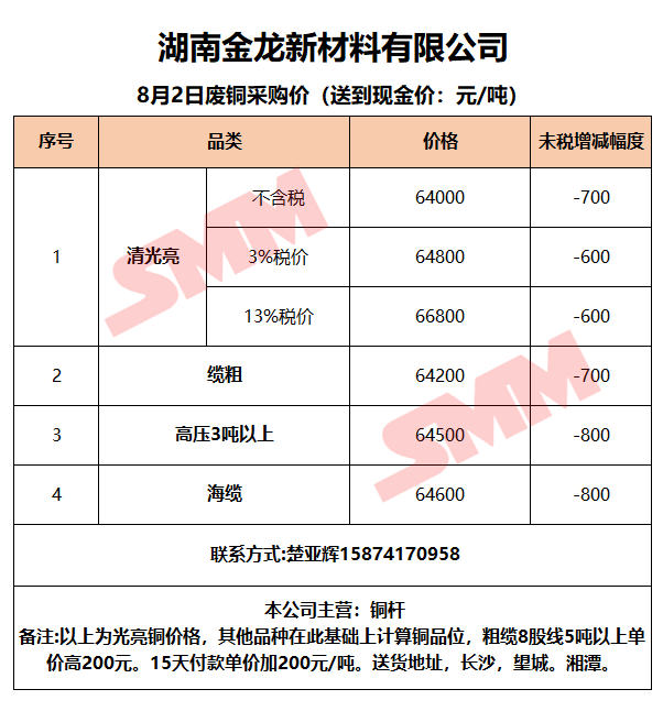 今日湖南金龙,废铜采购报价已更新,有货的朋友欢迎联系我们!