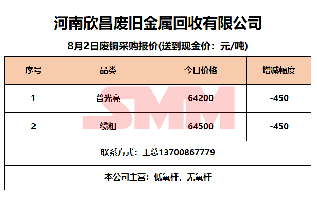 8月2日河南欣昌 废铜采购报价