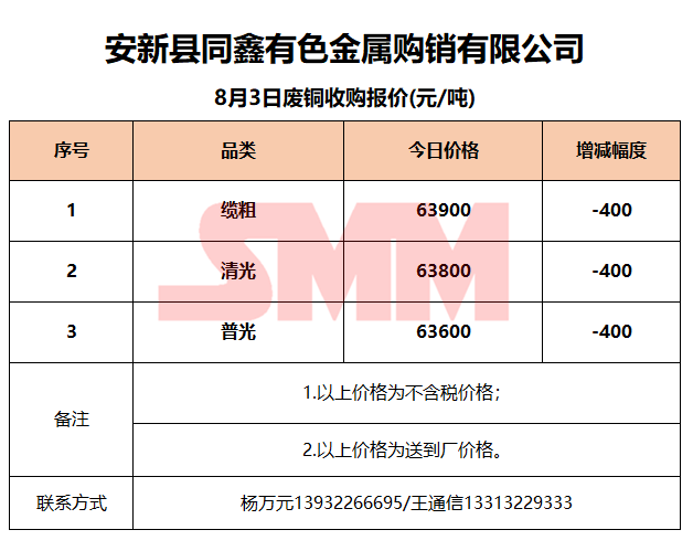 今日安新同鑫,废铜收购报价已更新,有货的朋友欢迎联系我们!