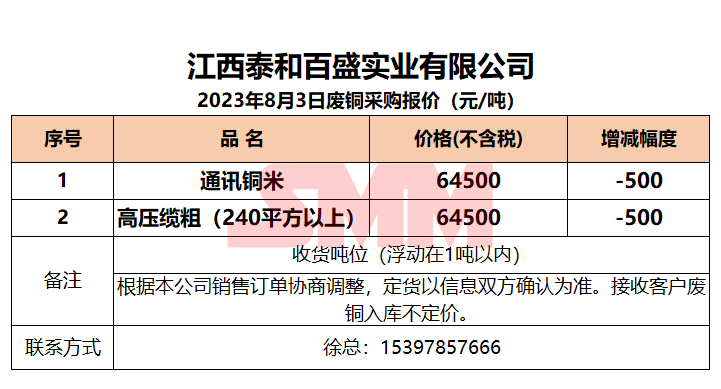 8月3日江西泰和 废铜采购报价