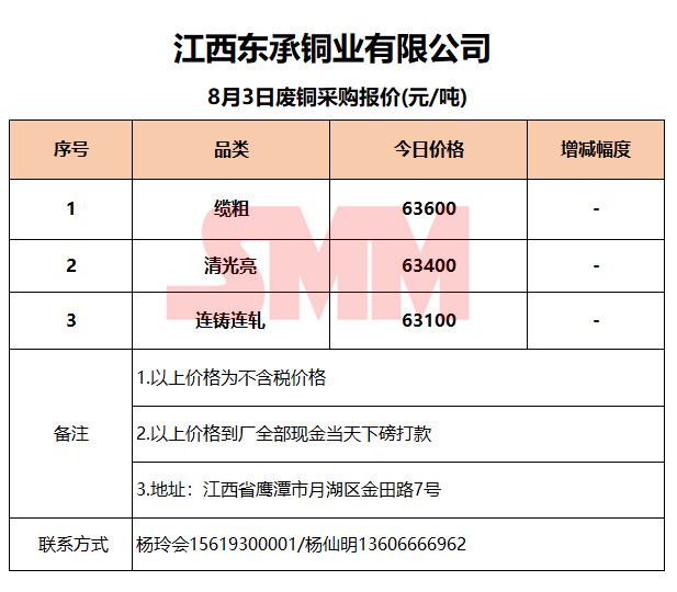 今日江西东承铜业/博升铜业 废铜采购报价已更新,有货的朋友欢迎联系我们!
