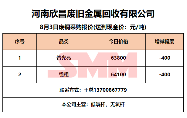 今日河南新昌铜业(欣昌),废铜采购报价已更新,有货的朋友欢迎联系我们!