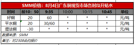 8月4日广东铜现货市场各时段升贴水(第一时段9:35)【SMM价格】