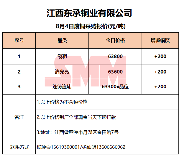 8月4日江西东承 废铜采购报价