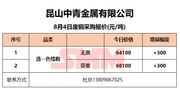 今日昆山中青金属 ,废铜采购报价已更新,有货的朋友欢迎联系我们!